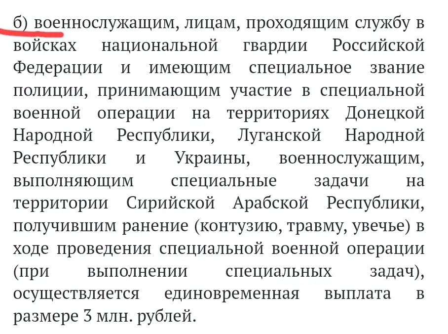 Но с другой стороны,право на получение единовременной выплаты по Указу Президента(Указ Президента РФ от 5 марта 2022 г. N 98 "О дополнительных социальных гарантиях военнослужащим, лицам, проходящим службу в войсках национальной гвардии Российской Федерации, и членам их семей" (с изменениями и дополнениями)) наступает независимо ни от каких перечней, страховых выплат, и независимо от степени тяжести, достаточно самого факта получения ранения, травмы, контузии . Кроме этого существуют ещё и региональные выплаты в размере 1 млн руб,страховка.