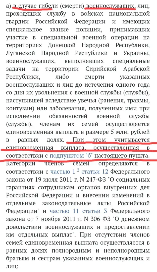 Пусть семья получит 5 млн. Выплаты за ранение и за гибель не получится получить, т.к. при выплате за гибель, учитываются выплаты, произведенные за ранение (п.1 Указа Президента РФ от 5 марта 2022 г. N 98).