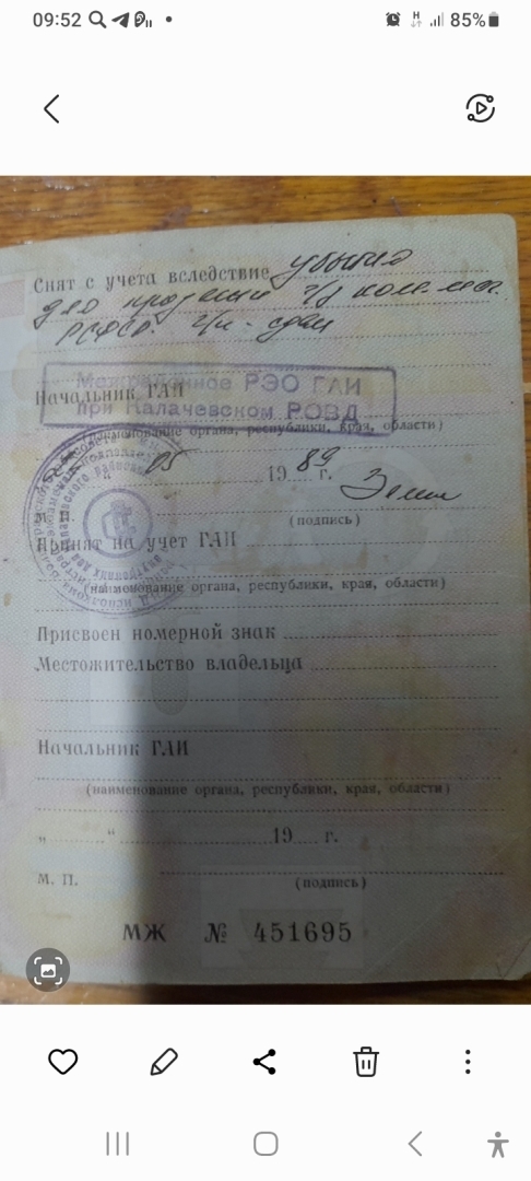 Так они нашли запись что я опять поставил его на учёт в 93 году, на вопрос как я мог сделать это без документов ничего не смогли ответить. Тех.паспорт у меня на руках( чудо что он сохранился).
