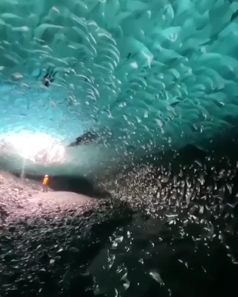 Пещеры внутри ледника Ватнаёкюдль имеют уникальные формы и яркие голубые оттенки. Вода, проникающая под ледник в течение летнего периода, оказывает воздействие на лед и образует очаровательные проходы и комнаты. Кристаллы льда разного размера свисают с потолка пещер, создавая впечатляющие скульптуры.