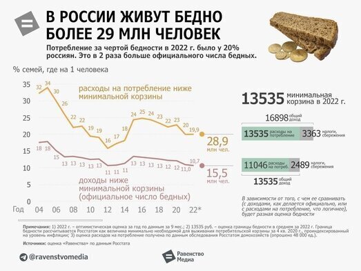 Статья : "Росстат назвал число живущих за чертой бедности россиян" (2022 год)