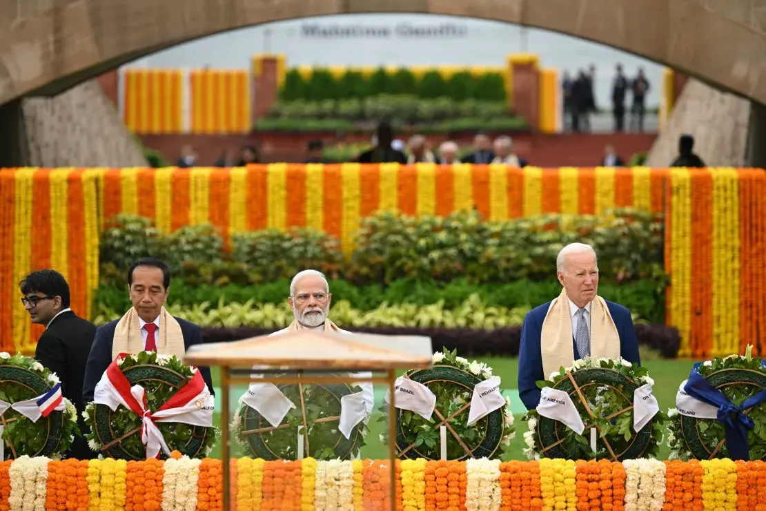 Когда лидеры стран Группы 20 (G20) вошли в мемориал Мохандаса К. Ганди, любимого отца независимости Индии, который был убит в 1948 году, их приветствовали шарфами кхади, ключевым символом его кампании ненасильственного сопротивления, которая помогла завоевать независимость Индии от британского колониального правления.