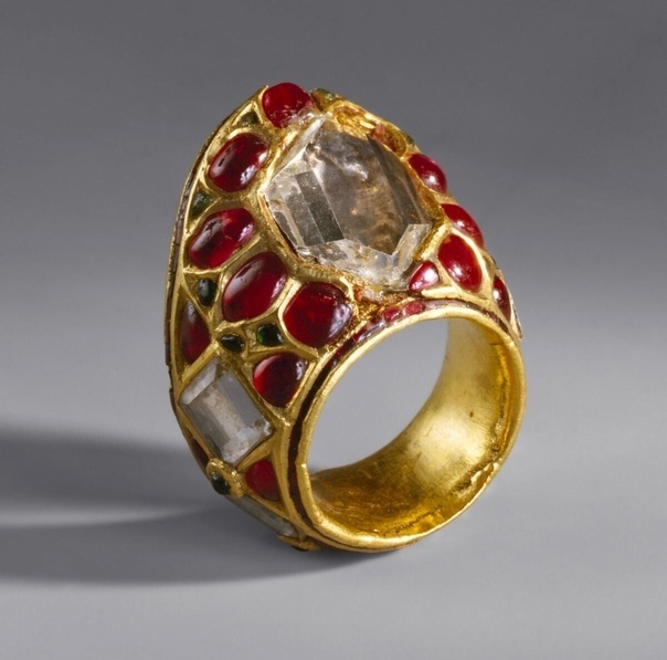 Кольцо изготовлено из высококачественного золота, которое придавало ему благородный и роскошный вид. Но именно драгоценные камни - алмазы, рубины и изумруды, придавали кольцу уникальность и эстетическую ценность. Сияние камней олицетворяло богатство и великолепие эпохи правления Шаха-Джахана.