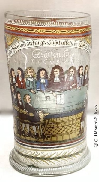 Эмалированный и позолоченный сосуд 17 века, датируемый 1696 годом, представляет собой ценное произведение искусства, прошедшее путь через историю. Происхождение этого изящного сосуда уводит нас в Германию, где он был создан.