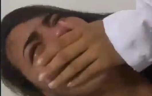 На записи молодая женщина, подвергшаяся нападению, начинает плакать еще сильнее.
