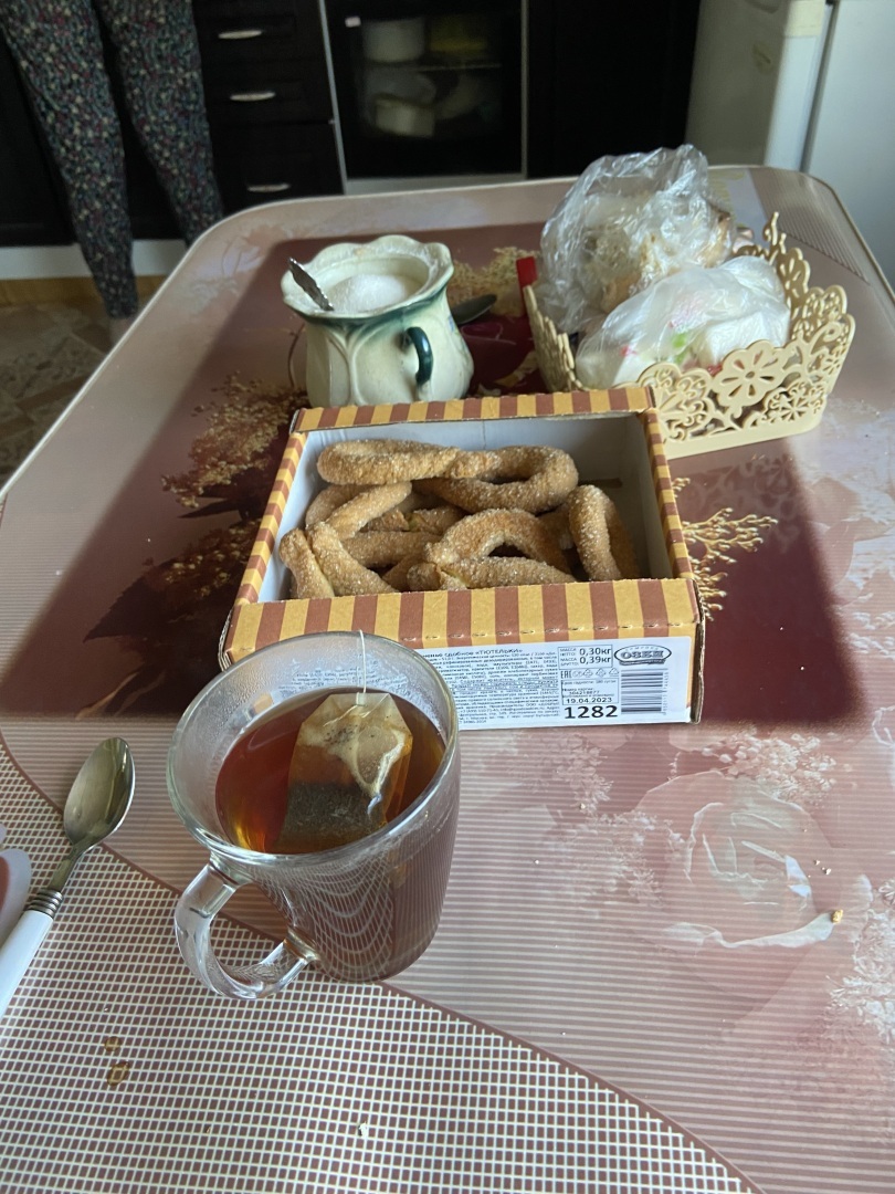 Мужчина, который должен был меня отвезти, как раз был в дороге с другими людьми, поэтому меня забрала его жена, подождать у них дома. Напоила меня чаем, накормила пирогом. Время 10 утра.