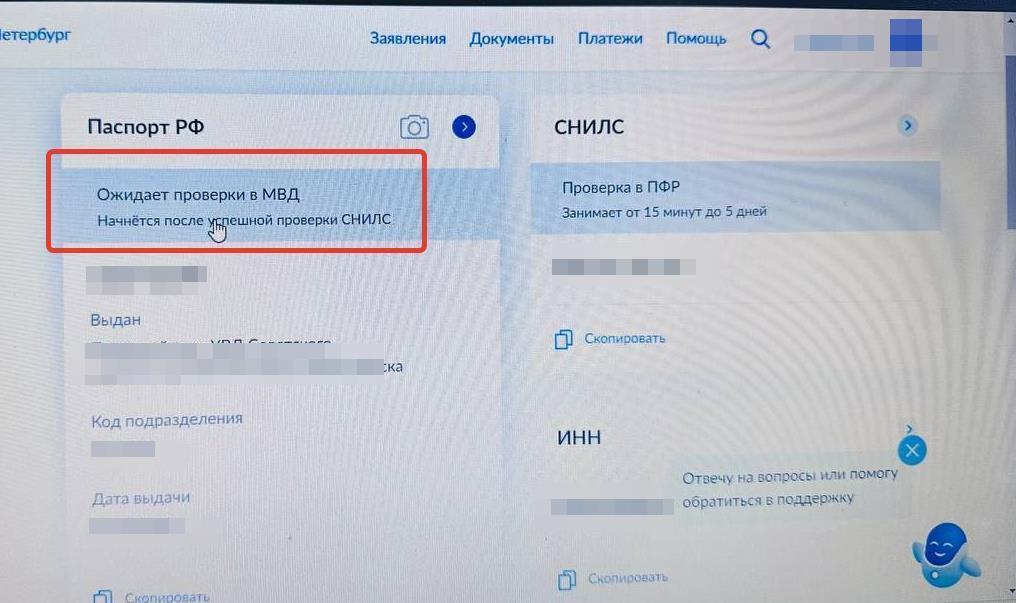 Заказали в моём ЛК справку «для другого» человека. Первая сложность, с которой пришлось столкнуться сразу же — ожидание проверки данных паспорта. До 5 дней…