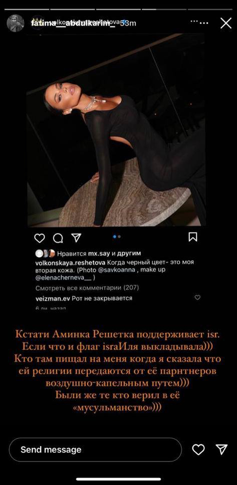 Известные личности, особенно находящиеся в центре внимания, несут особую ответственность за свои высказывания. Так одна из популярных в медиа юристов, которая часто встречается в интернете как Фатима Абдулкарим, стала участницей инцидента, опубликовав в своем Instagram****-аккаунте* stories, в которой она не только высмеивала, но и оскорбляла личность и достоинство другой девушки, Анастасии Решетовой, вписав это еще и в политический контекст.
