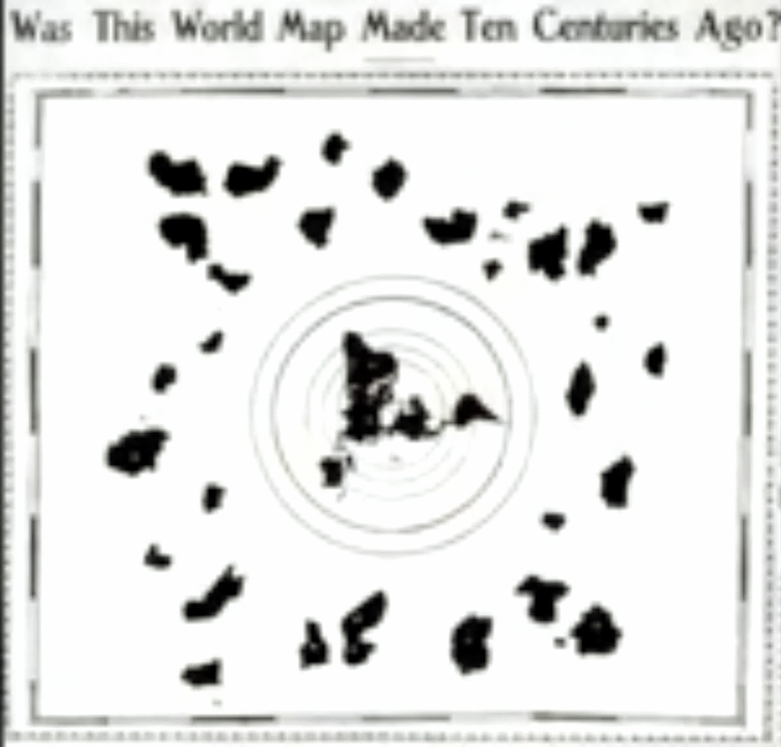 Из гавайской газеты от 11 января 1907 года о существовании карты мира, которой более 1000 лет. Проекция Меркатора показывает Северный полюс как центр круга.