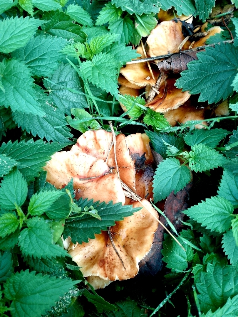 Я никого не призываю бежать в свой огород или на дачу в поиске грибов, они могут быть и опасны для вашей жизни. Грибы нужно хоть немного знать и разбираться в них, перед сбором! Скажу вам честно, я в них плохо разбираюсь, поэтому в лес за ними я не хожу, доверяю я только своих грибочки с огорода))) У нас растут только опять, под кустарниками, под деревьями и вот нашла в кропиве под вишней.