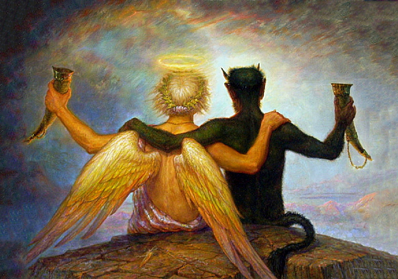 добро и зло - одно лицо, а ангела и демона можно различить по рогам и крыльям...