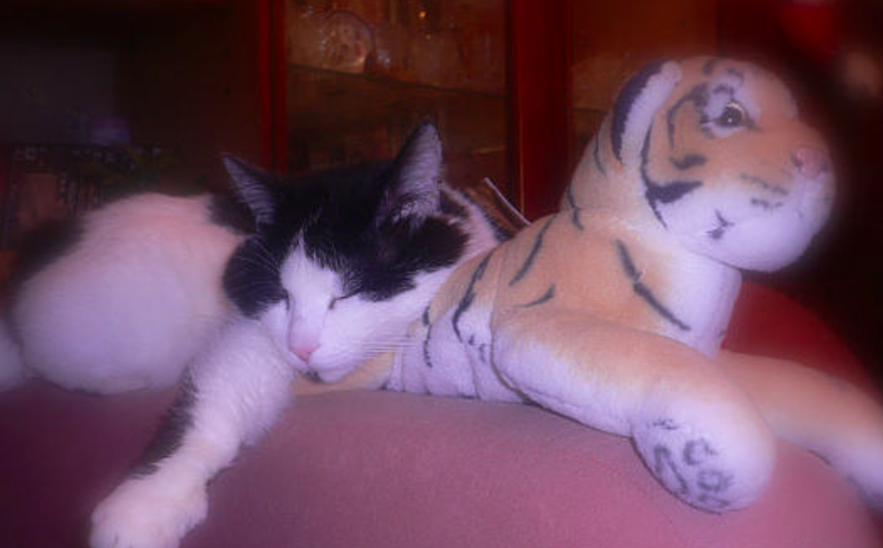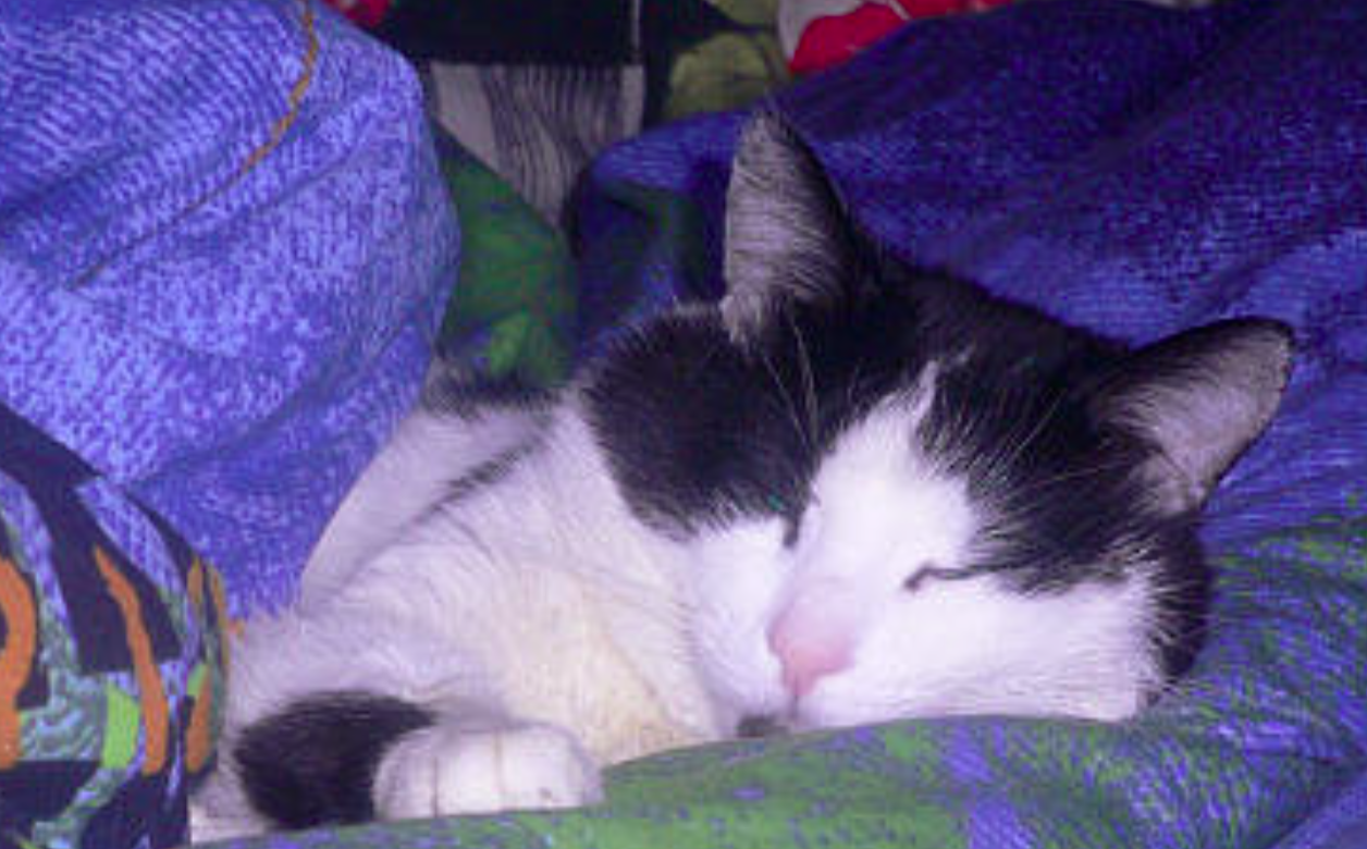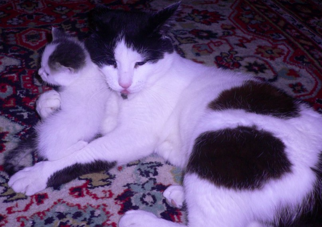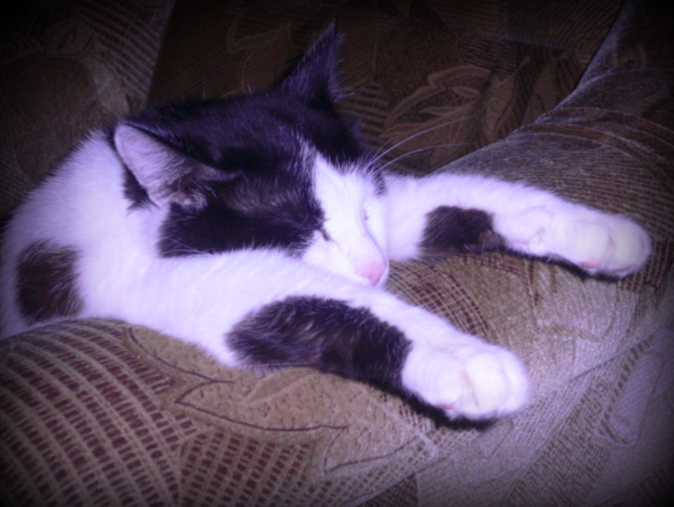 Мурзик вырос красавцем! Чёрно-белый кот был умён, сообразителен и никому не доставлял хлопот. Лоток знал на отлично и всегда спал вместе с Астой, вскормившей его грудью.