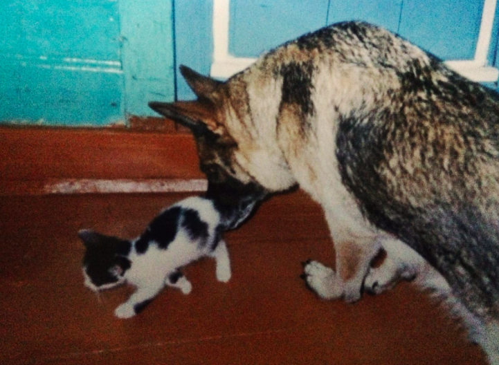 По крайней мере наша немецкая овчарка об этом знала, воспитывая с любовью и нежностью бездомного котёнка. Она заменила малышу родную маму. И вот как это было.