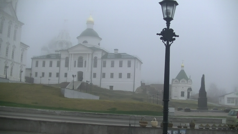 Перед нами в легкой дымке предстал великолепный храм Владимирской иконы Божией Матери. Построен он был в 1603 году. На его месте стояла церковь преподобных Зосимы и Савватия Соловецких.