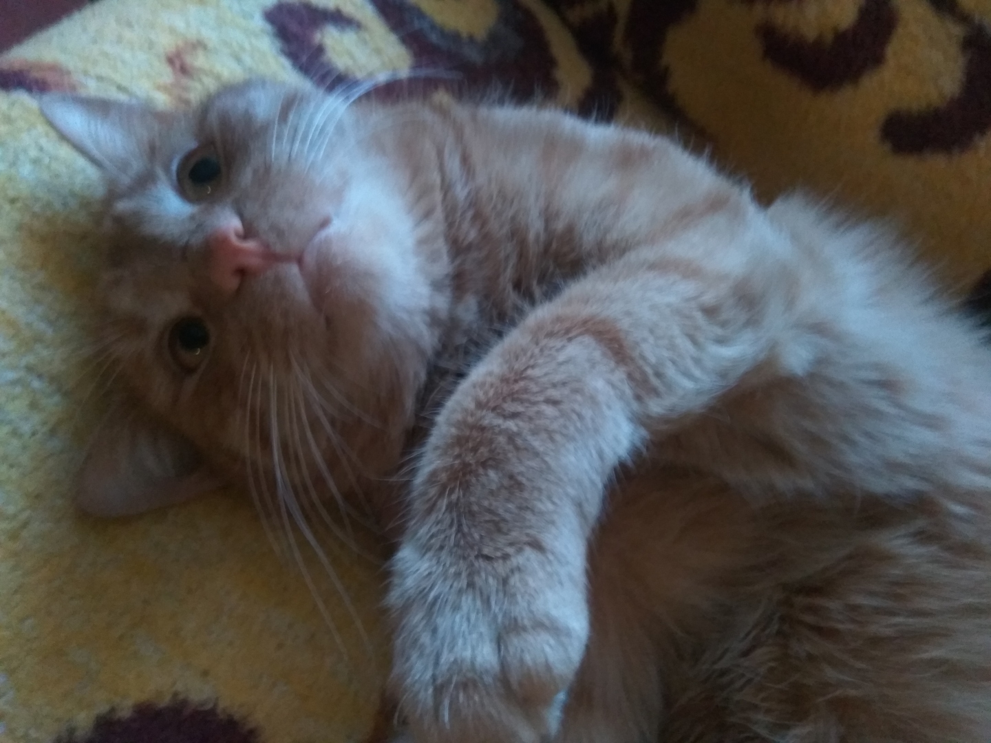 Кот Персик. Кусать хозяев изо всех сил начал, еще едва помещаясь на ладони. Возможно, от того, что у него не было мамы-кошки. Ну, то есть, она его родила, но вскоре сама погибла, так получилось. Но что за кот, если его ни погладить, ни потискать?
