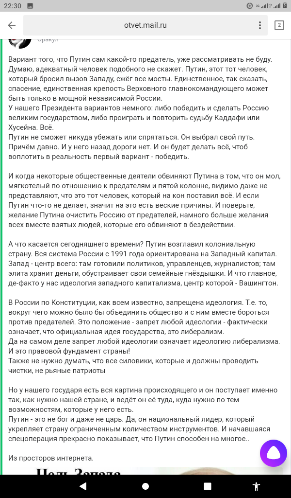 Да ,не бывает правителей ,которыми все довольны . Но никто даже из российских врагов СССР не способен доказать ,что их благодетель Путин ,принес большую пользу России и российскому народу . И вся пропаганде за Путина сводится к тому ,что до него было всё плохо ,и без него станет всё плохо ".