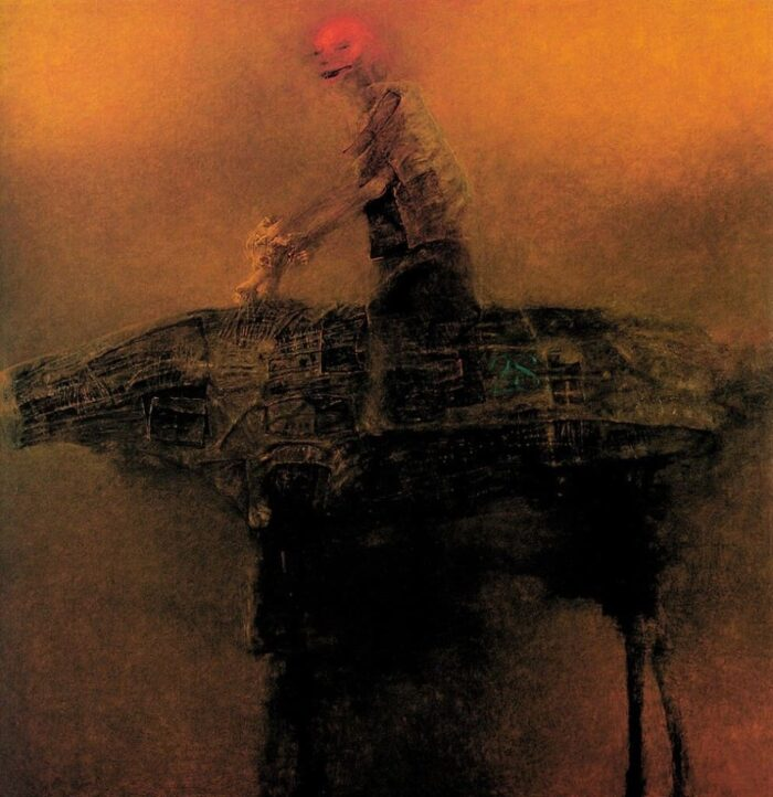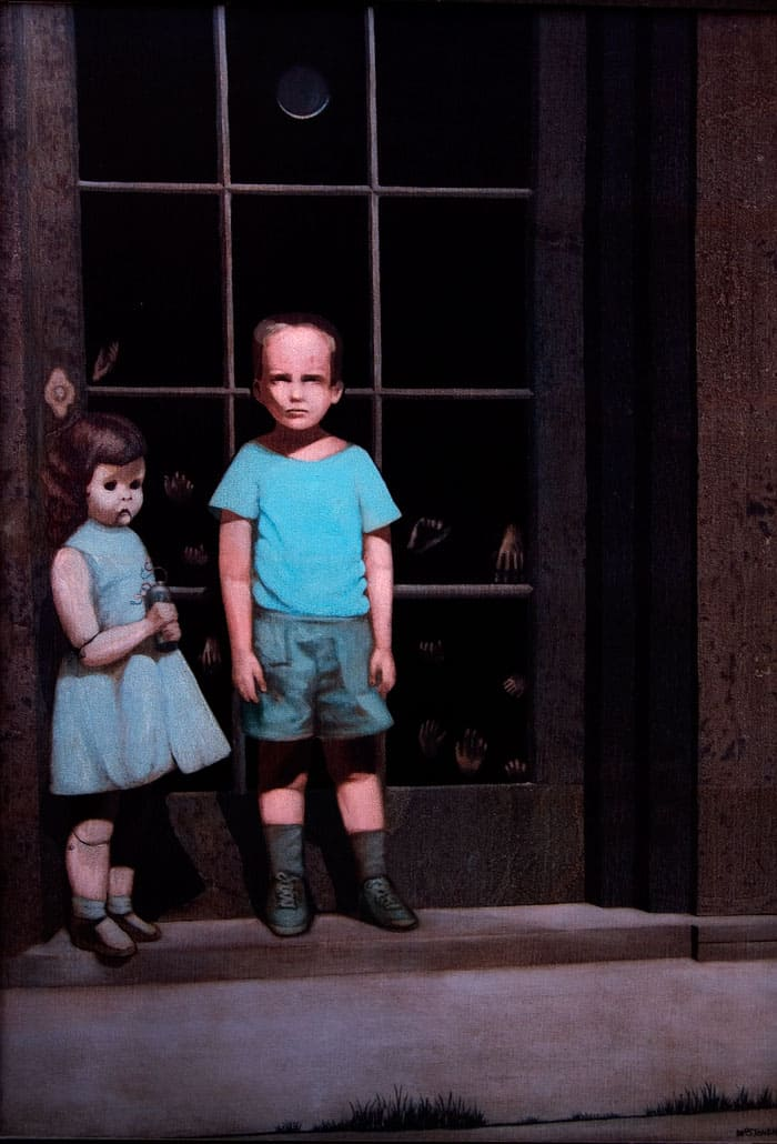 На картине изображен мальчик с куклой. Если присмотреться, становится не по себе - странное выражение лиц, темные глаза и силуэты рук за окном вызывают жуткие ощущения. По словам автора, эта картина отражает переход между реальностью и потусторонним миром. Реальность символизирует мальчик, другой мир - руки за окном, а посредником выступает кукла.