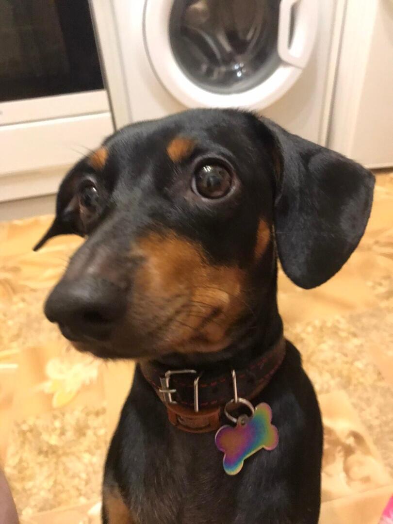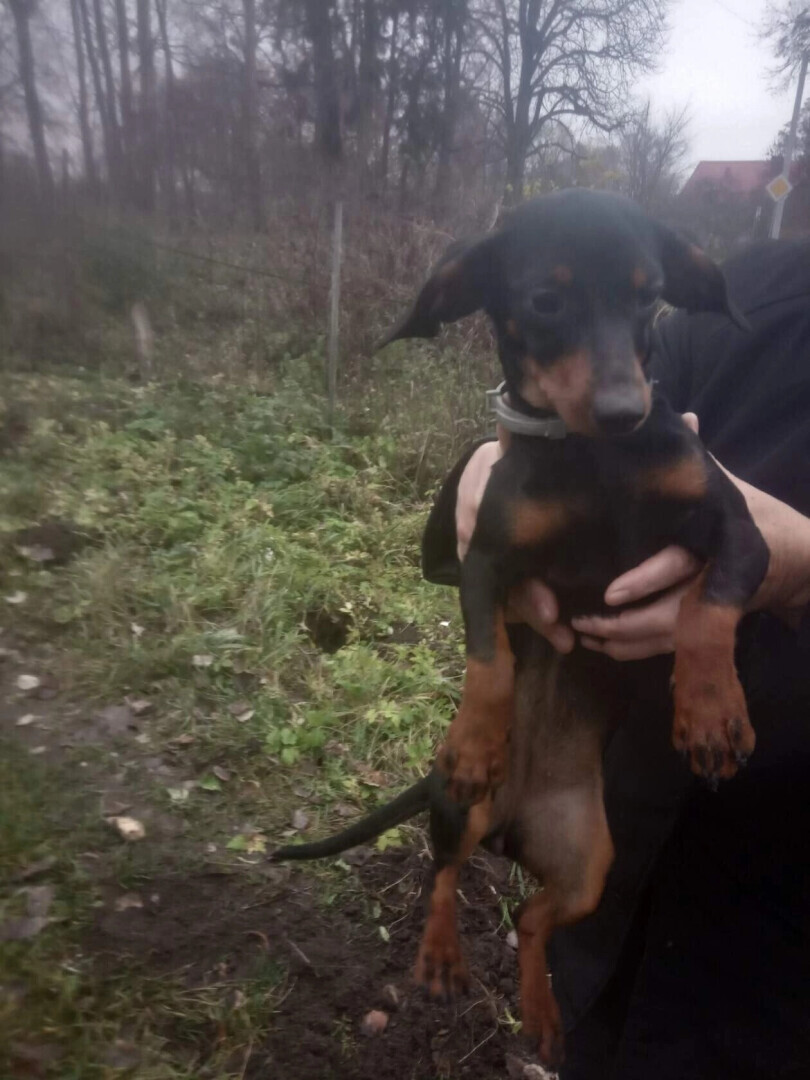 Помесь дворняги и таксы, ребёнку 5 месяцев. Живёт на улице, в глухой деревне, в заброшенном доме. Её, маленьким щенком взяли в семью, дети наигрались и выбросили. Питается тем, что ворует кур и цыплят. Чем её только не били! Та неравнодушная женщина, которая выложила объявление, слёзно просила быстрее забрать собаку, иначе, её просто убьют или она замёрзнет! Была поздняя осень и по ночам заморозки.