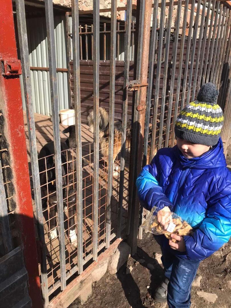 Купили 20 кг корма, пакет вкусняшек и поехали в приют Славянское. Там безумное количество собак, все в клетках и... большие, в нашу маленькую двушку никак. Спросили, где маленькие собачки, так получилось, что в тот день они сидели на карантине. Значит не судьба! Покормили и уехали.