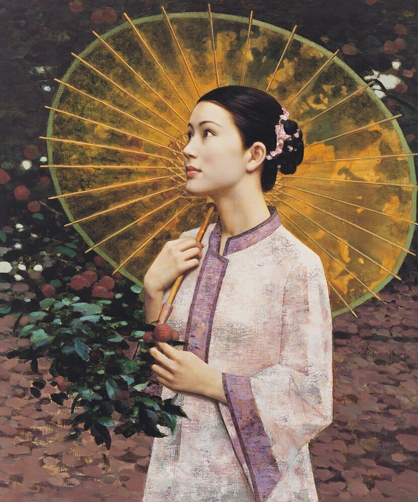 Его картины очень поэтичны и возвышенны, в них много деталей, чистоты и солнечного света. Поражает, с какой любовью и уважением Гуань Цзецзуй рисует женщин. Наверное, дотошный зритель немножко поворчит и скажет, что многие лица на полотнах всё-таки имеют смягчённые европеизированные черты: выраженные веки, не такой узкий разрез глаз, как у китаянок, высокие скулы и более светлый оттенок кожи. Среди обычных жительниц Поднебесной таких небожительниц обычно не встретишь. Разве что увидишь на экране или подиуме. Но внешняя красота кинодив и манекенщиц почти всегда является следствием удачной пластики и хорошей косметики, чем щедрости природы.