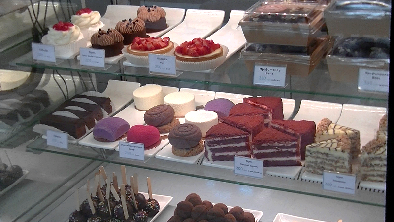 Витрина тортов в магазине на ул. Жуковского. Арзамас