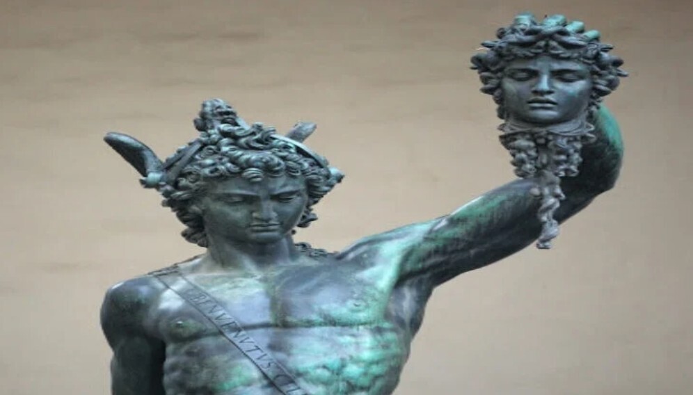 В поисках утраченного произведения (произведений), изображающего подвиг Персея, следует обратиться прежде всего к литературным свидетельствам. Путешественник II в. н.э. Павсаний видел в галерее афинского Акрополя среди нескольких переносных картин, потускневших от непогоды, одну, изображающую Персея, возвращающегося на Серифос с головой Медузы, чтобы преподнести ее царю острова Полидексу. Именно на острове Серифос вырос Персей, живший со своей матерью Данаей, изгнанной из Аргоса. Однако кроме фрески Павсаний, проходя мимо Пропилеев по пути в святилище Артемиды Брауронийской, увидел бронзовую статую Персея работы знаменитого бронзового скульптора Мирона из Элефтереса, чье творчество датируется 480-440 гг. до н.э.Путешественник описывает Персея Мирона как "работу Медузы", то есть совершившего свой подвиг и триумфально возвращающегося с головой чудовища. Важное выставочное место произведения - афинский Акрополь - и знаменитый бронзовщик, создавший его, свидетельствуют в пользу признания его образцом для последующих творений.