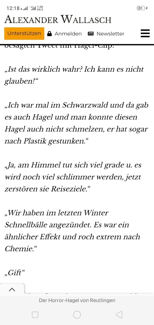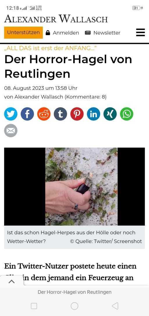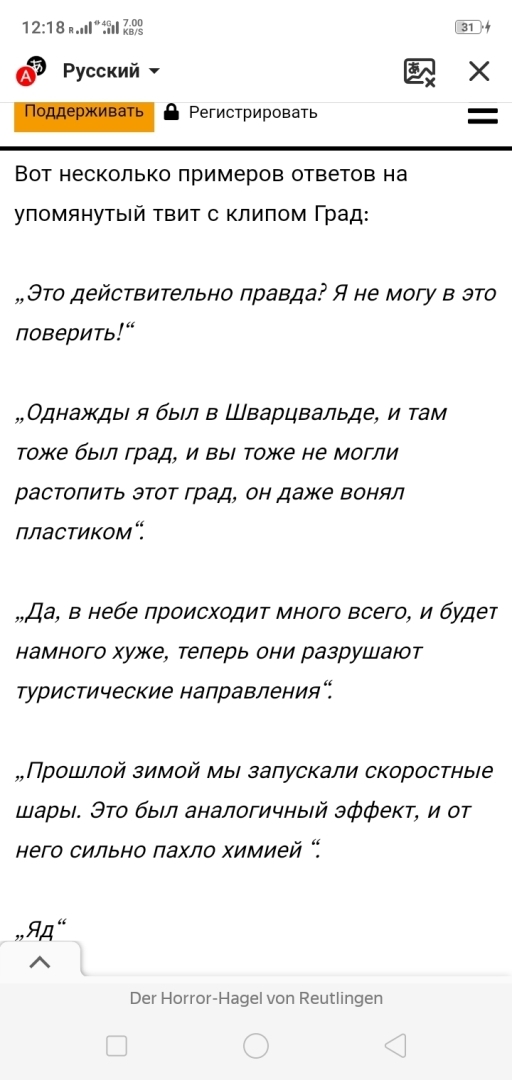 Скриншот немецкого новостного сайта. Перевод комментариев о граде