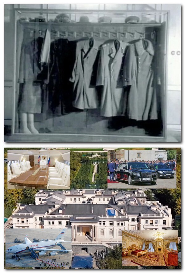Госдач у Сталина было (реально действующих) всего шесть, и сейчас не всякий чиновник рискнул бы там кабинет иметь с той обстановкой. И дворец Путина для сравнения.Кабинеты Сталина на госдаче "зелёная роща" и в снесённом 6-м корпусе Кремля. На роскошь не тянет вообще.