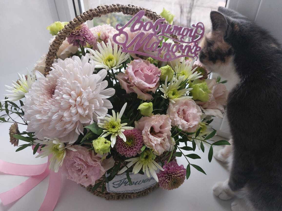 даже нашей кошечке букет понравился