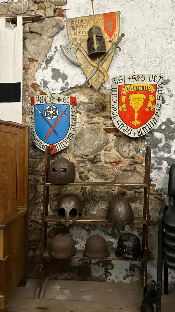 Можно посетить подвалы, в т.ч зал пыток, три комнаты, наполненных средневековой атрибутикой, которую можно примерить (щиты, кольчуги, шлемы, мечи, топоры, моргенштерны и алебарды). Также, мы прошли внутрь замка, а точнее, к его остаткам, прикоснулись к кирпичной кладке, которой уже более 7 веков! Это потрясающе! В определенные дни на территории проводятся огненные шоу и поединки викингов в доспехах, может когда их увидим...