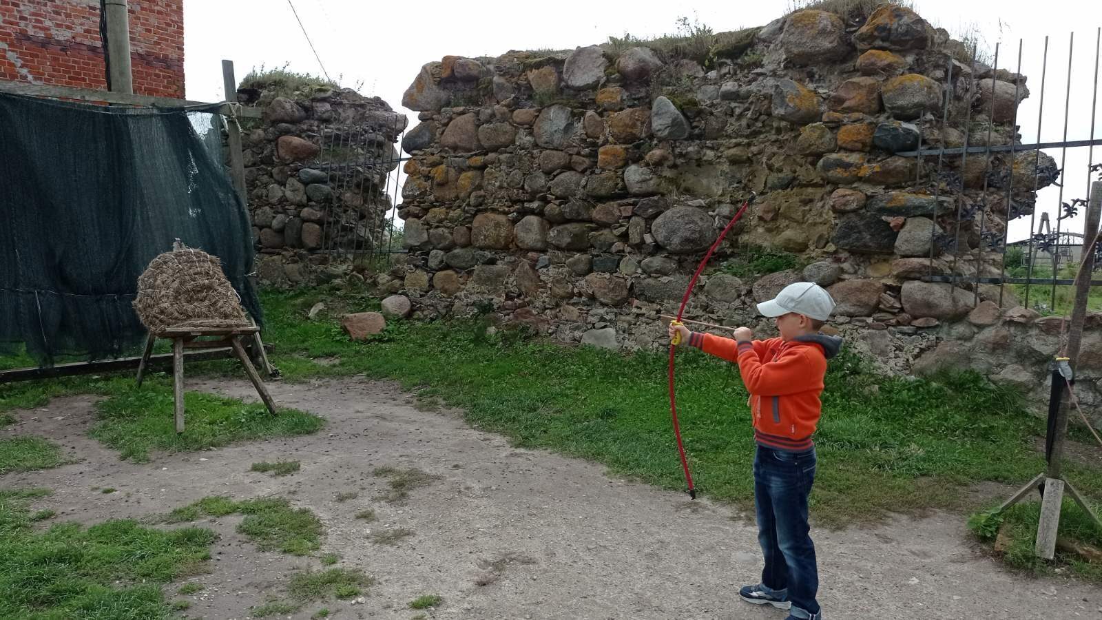 В стоимость билета входит бесплатная стрельба из лука, но там не стрелы, а ветки, покусанные собакой. У кого есть острое желание пострелять, то лучше обратиться к тевтонскому рыцарю на территории замка. Всего за 200р мы получаем 10 выстрелов из лука или арбалета + фотографии на память, но сын обошёлся бесплатными "палками-стрелами"))