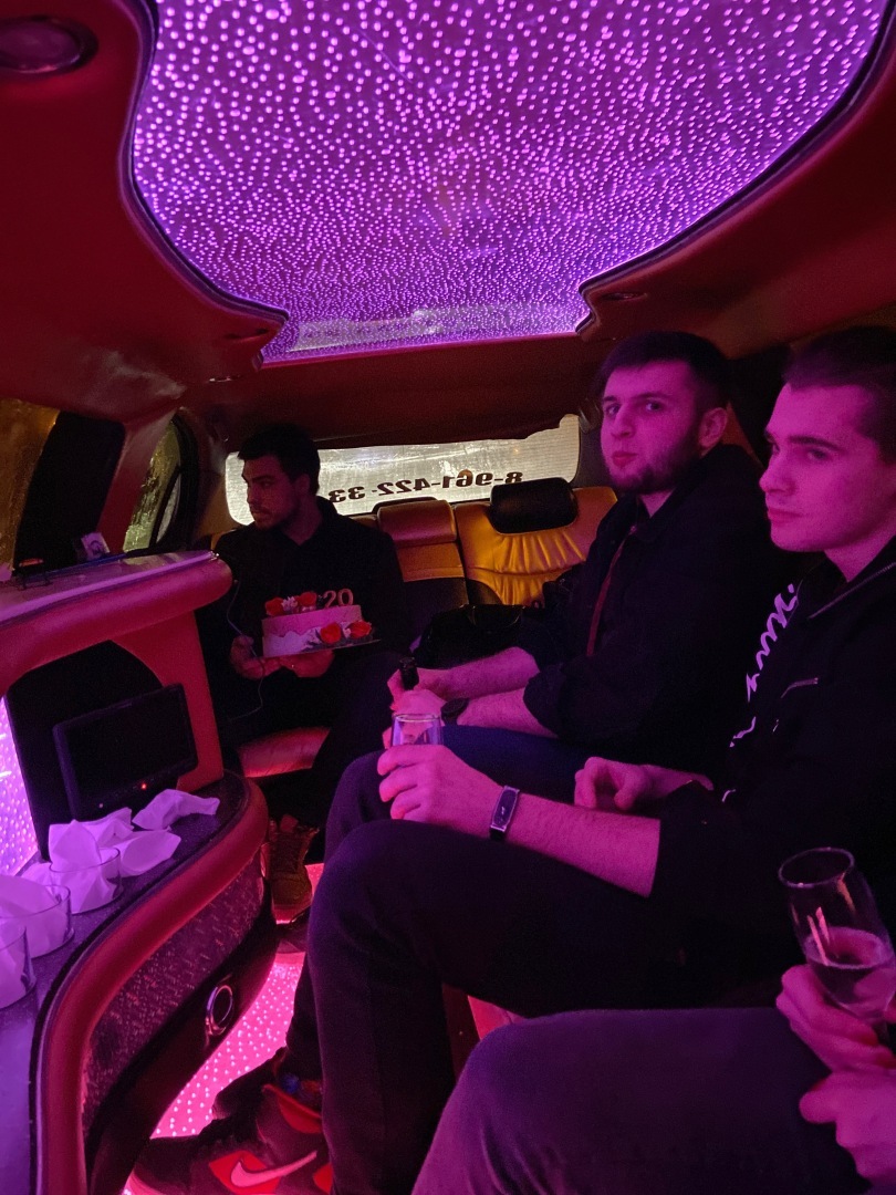 На лимузине мы поехали ко мне домой, забрали торт и приехали в тот самый дом, который сняли друзья и в котором днем я была с парнем. По дороге мы пили шампанское, фоткались, пели песни, это было здорово!