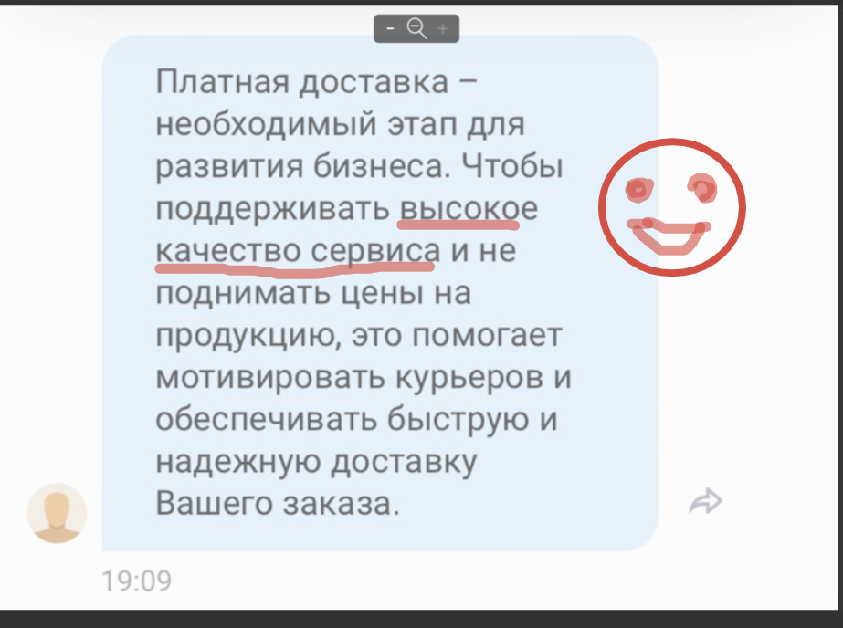 И тогда приходит гениальный ответ: платная доставка введена для того, чтобы поддерживать высокое качество сервиса!