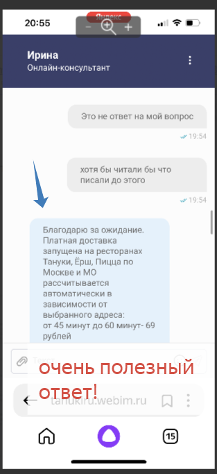 Когда очередной робот-тануки отключился от диалога, спросив, решил ли он мой вопрос и может ли он быть чем-то полезен, мы таки поняли, что пытаться объяснить свою потребительскую правоту тут бессмысленно. Даже в непафасной Пятерочке всегда продают товар по условиям, которые заявлены в торговом зале. Но у Тануки свои законы. Защита прав потребителя для них не существует. Так же, как и клиентоориентированность.