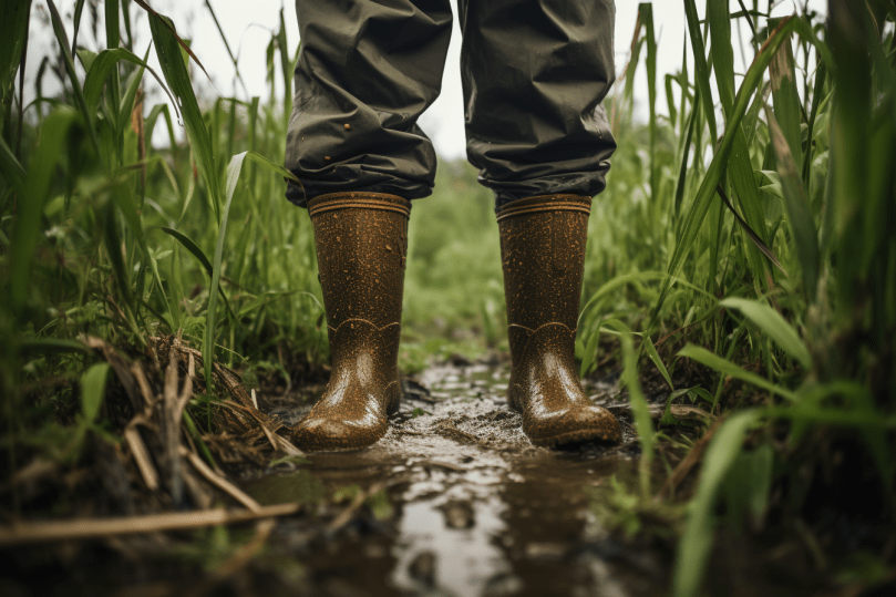 Он решил прогуляться, чтобы проверить коров на южном пастбище. Идя по старой грунтовой дороге, он наслаждался видами и звуками лета: весело щебетанием птиц на деревьях, жужжанием насекомых и мягким шелестом листьев на легком ветру.