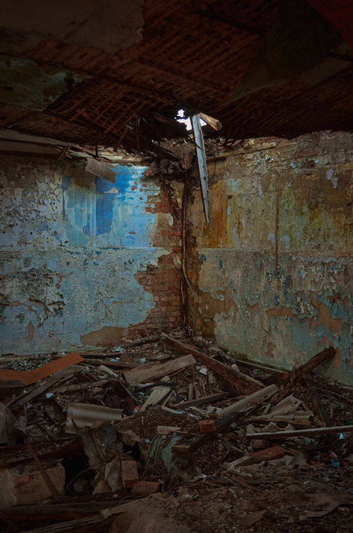 Как ни старается человек взять власть над природой, рано или поздно всё возвращается в первоначальный вид - вот и заброшенные здания постепенно переходят в объятия родной сущности: деревья оплетают корнями стены, разрушают фундамент, крышу, мелкие грызуны прогрызают пол, мусор и осколки съедает земля. Руины отдаются во власть силы, могущественнее человеческой.