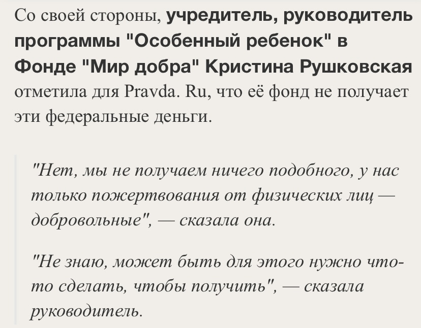 Предусмотренные деньги оседают непонятно где, потому что представитель фонда говорит следующее:
