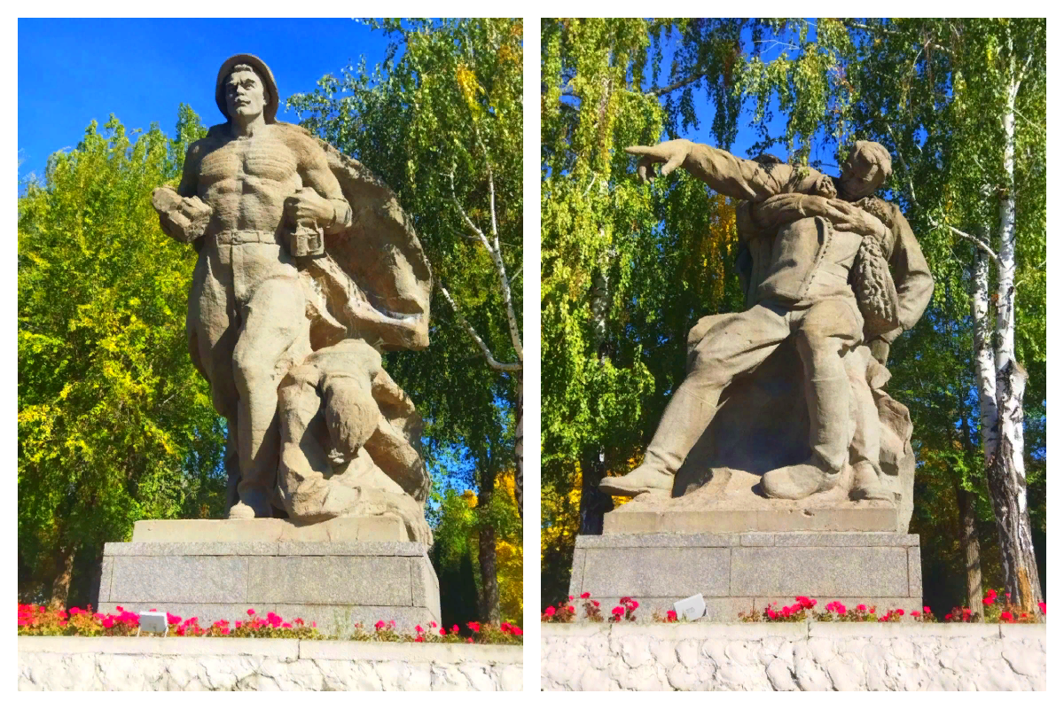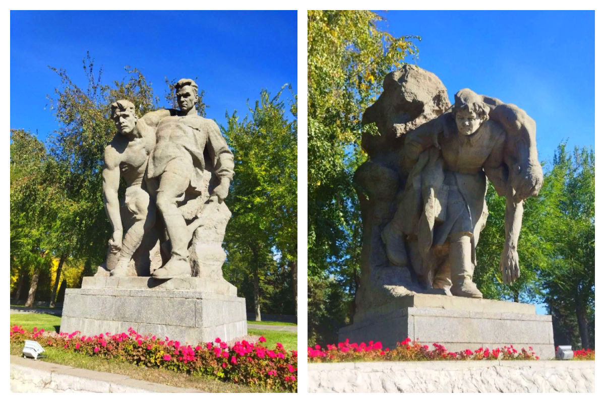 В скульптурных композициях на Площади Героев запечатлены подвиги отважных защитников города: