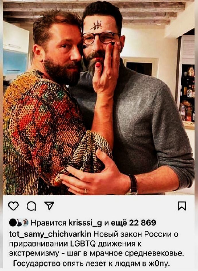 Недавно Чичваркин* заявил, что Запад и сплочённая могучая кучка беглых эмигрантов проиграли Путину, но тут же всполошился по поводу запрета в России экстремистского ЛГБТ****- движения и выложил в Сеть довольно гнусную фотографию в обнимку с якобы мужиком, фамилию которого даже узнавать омерзительно.