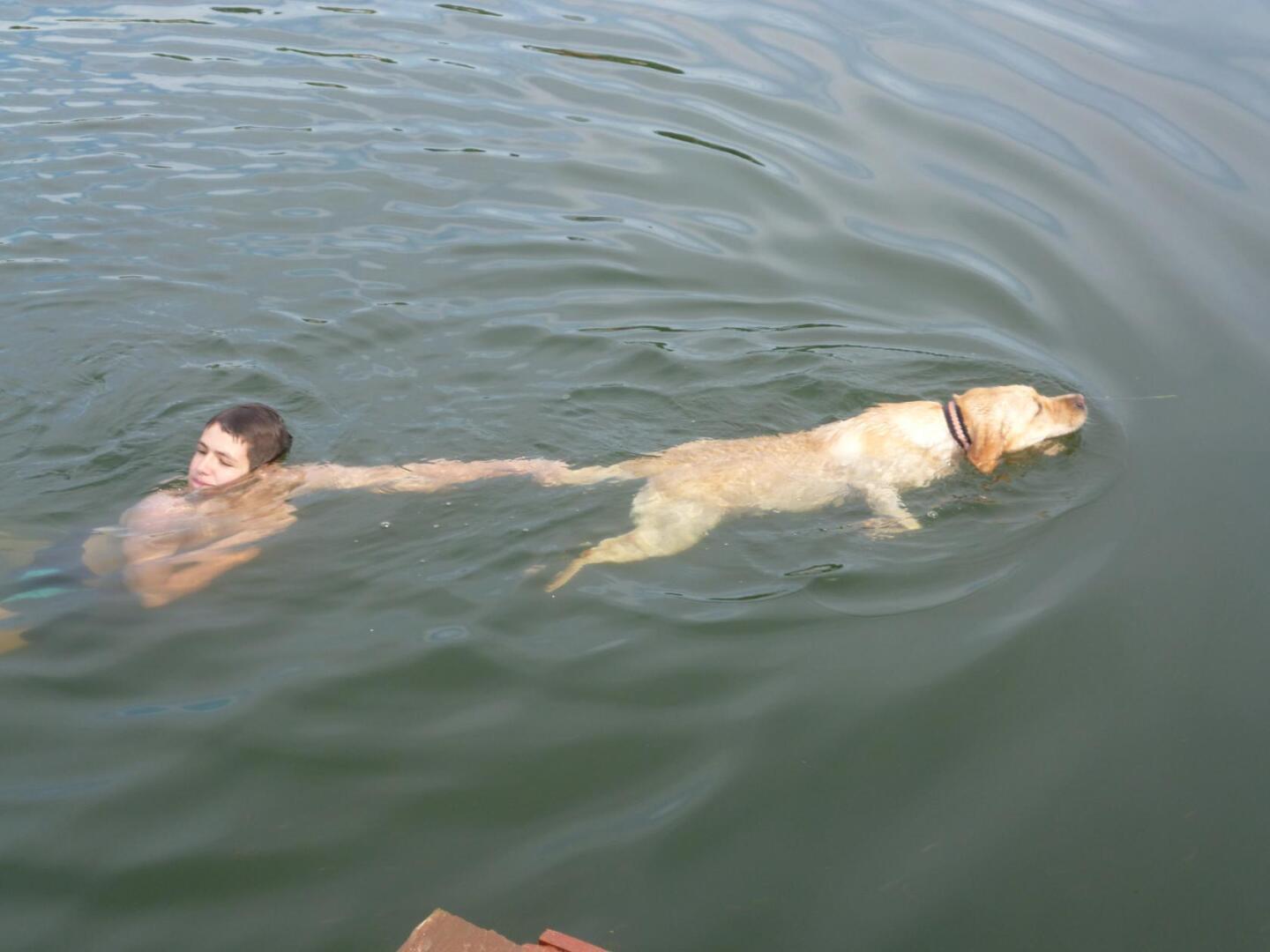 А на водоёме мы ещё и купались вместе. И так всегда меня сопровождала, не оставляла одну!
