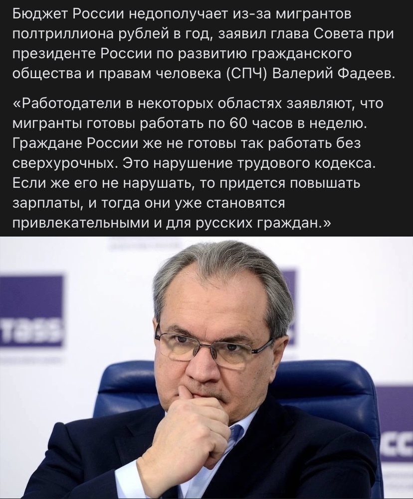 Наташа Вы подняли актуальную тему...и правильно написали что в стране может возникнуть очень непростая ситуация...Но об этом предпочитают не думать ведь работа мигрантов весьма рентабельна по сравнению с работой граждан России. Как по зарплате так и по налогам...А с учетом демографической ямы это тенденция будет только набирать обороты...Ибо в думе есть лобби...все прозрачно и понятно.