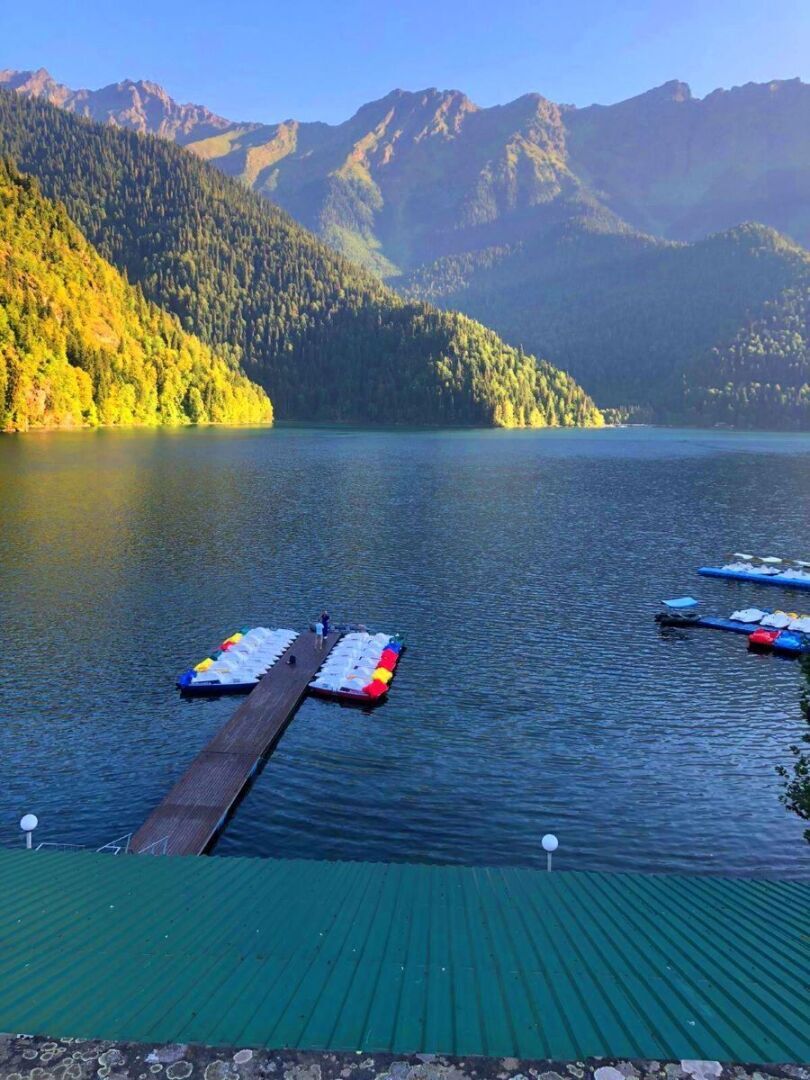 Нами была совершена еще одна поездка на озеро Рица. Опять же повторюсь, сама дорога до него — это рай для глаз. К озеру, в этот раз, мы решили подъехать со стороны дачи Сталина. И это было лучшим нашем решением! Меньше народу, а что самое главное открывается прекрасный вид на озеро. И, конечно, мы посетили саму дачу, которая оказалась более роскошной, чем в Афоне. В этот раз мы получили нереальное удовольствие от озера. Возвращаясь обратно, мы нашли съезд к воде. Небольшая горная речка, впадающая в Рицу, и леса, где отдыхают, в основном, местные жители. Тихо и спокойно. Мы перекусили и поехали домой.