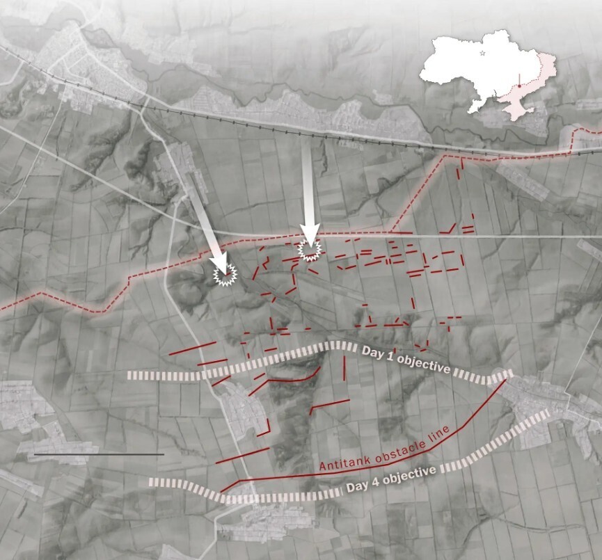 Украинские войска ожидали увидеть минные поля, но были ошеломлены их плотностью. Земля была усеяна взрывчаткой, ее было так много, что некоторые из них лежали штабелями. Солдаты были обучены вождению своих "Брэдли" на объекте в Германии, на ровной местности. Но на кашеобразной почве Запорожской области, в оглушительном шуме боя, они с трудом пробирались по узким дорожкам, очищенным от мин передовыми частями. . . .