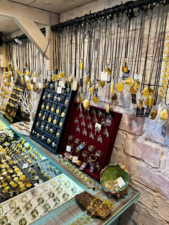 Цены на хомлинов гораздо ниже, нежели в других местах. Мы купили Витю за 600 рублей, в Рыбной деревне, точно такая фигурка от 1000р и выше. Много янтарных украшений, бус, серёжек. Единственное, я не поняла, почему сувенирный магазин называют Мастерской, думала, нам покажут как их изготавливают. Ну да ладно, ребёнку понравилось и это главное!