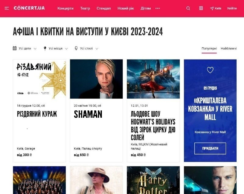 Крупнейший украинский сайт по продаже билетов анонсировал выступление SHAMAN в Киеве в 20 апреле 2024 года. Знают уже в Киеве дату капитуляции!