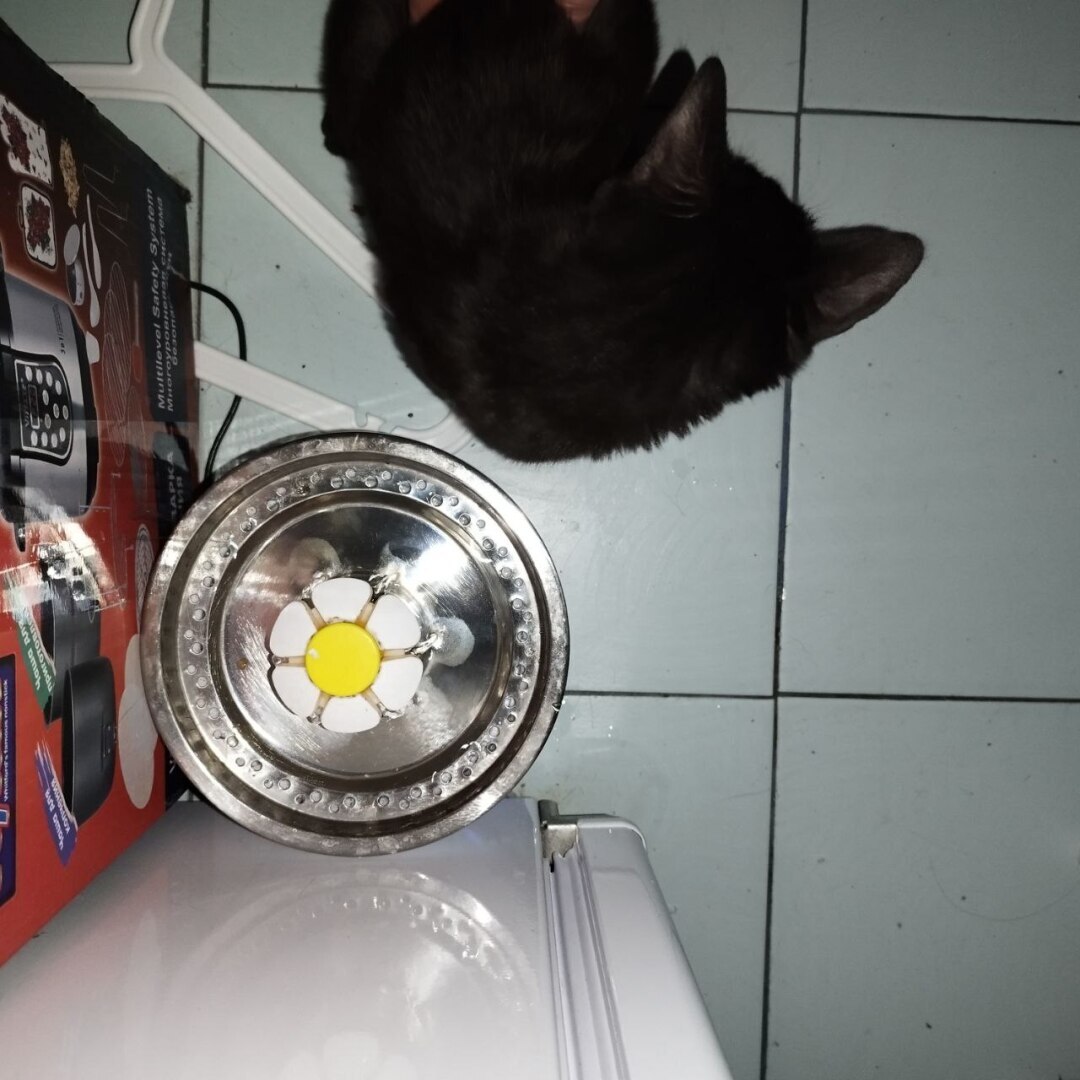 И этот мелкий нахал спокойно подходит и начинает пить из моего стакана. А когда там в один момент оказалось мало воды, сунул лапу и невозмутимо облизал. И ни капли раскаяния на наглой чёрной морде, блин. Смеюсь, конечно. Пусть, что я себе, другой воды не налью? Лучше у ребёнка пусть будет побольше воды, чем в какой-то момент настанет недостаточное потребление и придётся поить насильно.