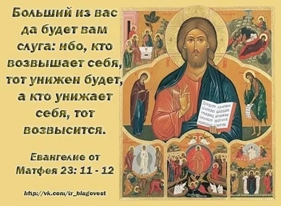 Унижающий себя возвышен будет, а возвышающий себя унижен будет.