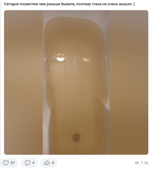 Ну ,сними видео своей квартиры( воды) и если такая проблема у тебя лично, вызови сан. техника и прочисти трубы .. Зачем ты привела о половине всего города? Если такая проблема в городе,были бы и статьи ..Опять враньё ?