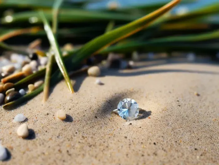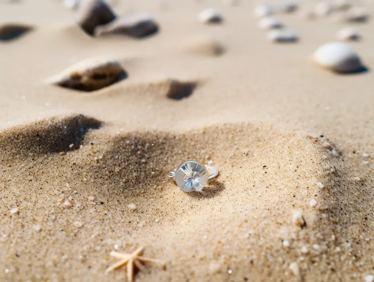 Любопытство охватило ее, она наклонилась, ее сердце колотилось от волнения и удивления. "Ни за что!" она громко ахнула. «Это не может быть правдой, верно?» — пробормотала она, сметая песок. Там, полузасыпанное песком, лежало кольцо с бриллиантом, ярко сверкающее под золотыми лучами солнца. Его неожиданный и неуместный вид вызвал дрожь в ее теле. Это была не просто пляжная находка; это казалось гораздо более ценным, чем ее обычные открытия. За этим должна была быть история.