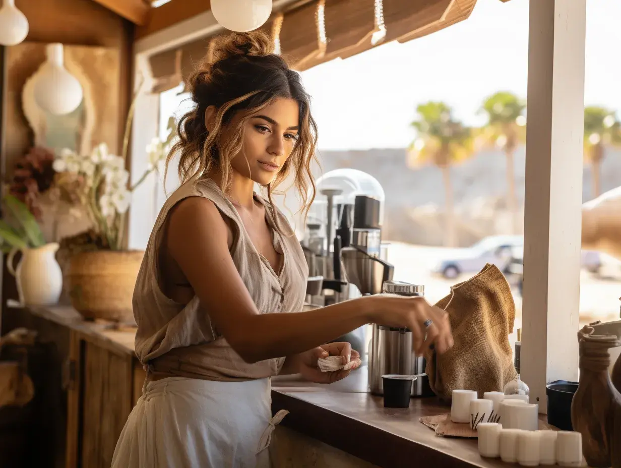 Саманта привнесла эту пляжную атмосферу и в свою кофейню. Она украсила его предметами ручной работы, такими как маленькая красочная мозаика из гальки на прилавке и ракушки, украшающие углы. Покупатели входили в манящий запах кофе и тонкий декор в морском стиле, что делало магазин уникальным и гостеприимным местом. Эти маленькие штрихи создавали атмосферу одновременно яркую и спокойную, как на пляже, который она так любила.